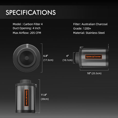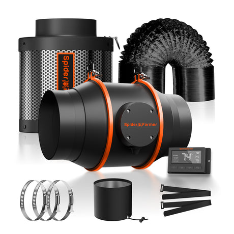 Spider Farmer® 4 Inch Inline Fan 205CFM Exhaust Fan Carbon Filter & Ducting Kits