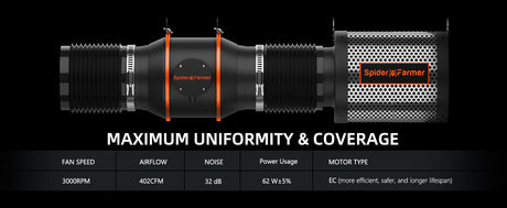 Spider Farmer 6-Zoll Inline-Lüfter 402 CFM mit Temperatur- und Feuchtigkeitsregler