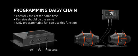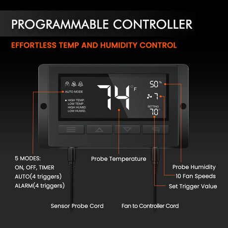 Spider Farmer® 4-Zoll Inline-Lüfter mit Temperatur- und Feuchtigkeitsregler 205 CFM