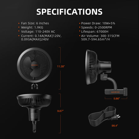 Spider Farmer 6-Zoll Inline-Lüfter 402 CFM mit Temperatur- und Feuchtigkeitsregler